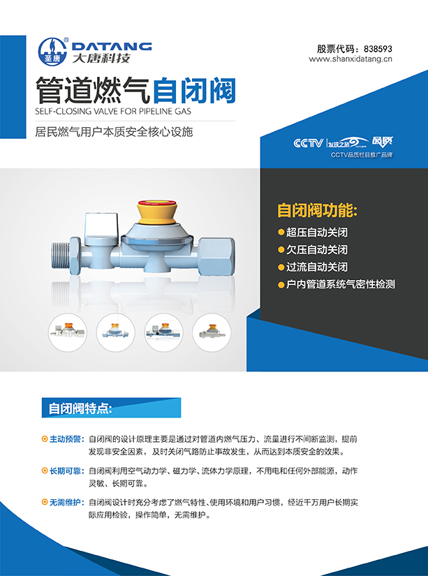 管道燃氣自(zì)閉閥,适用于管(guan)道天然氣使用(yòng)。